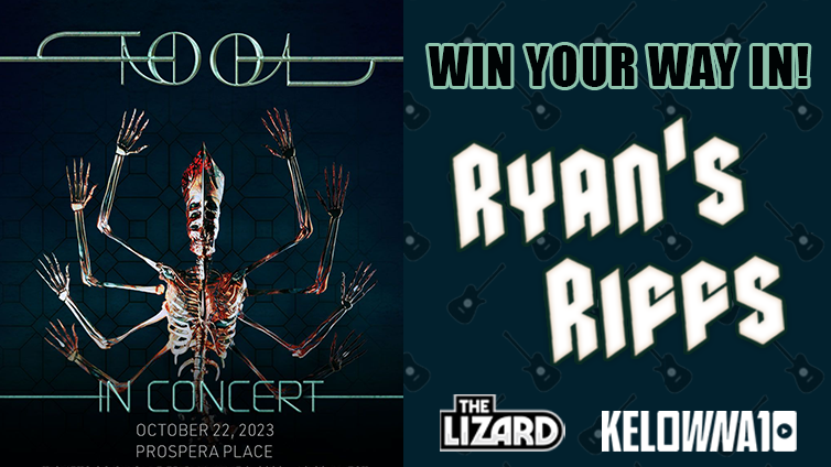 🤘 See TOOL from the LIZARD Suite🤘 Ryan's back with another riff, but this time, he's got more than just tickets. Watch Ryan's latest video and enter the name of the song he is playing below! You'll be entered to win a spot for you and a friend to join Ryan in the 104.7 The LIZARD box at Prospera Place on October 22nd! Deadline to enter is Wed., Oct. 18 at 9 p.m. PST! CONTEST DETAILS